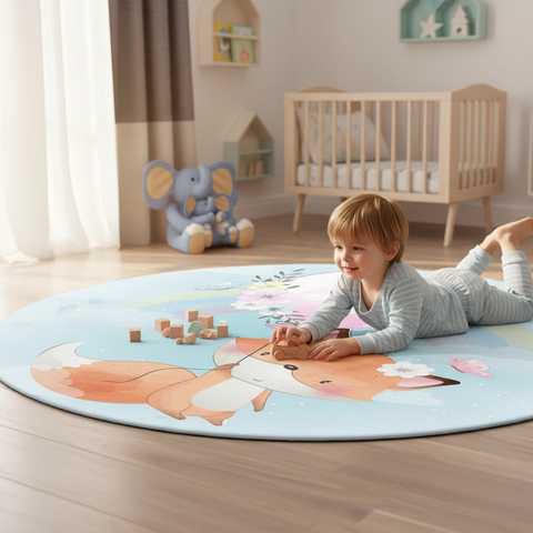 Tapis Renard et Petit Ballon – Douceur & Confort pour une Chambre Enfant